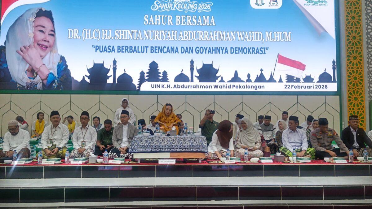 PEKALONGAN (22/2/2026) Di saat sebagian besar orang masih terlelap, suasana di Kampus UIN K.H. Abdurrahman Wahid (UIN Gus Dur) Pekalongan justru menghangat oleh nyala api persaudaraan. Kehadiran Ibu Negara ke-4 RI, Nyai Hj. Sinta Nuriyah Abdurrahman Wahid, membawa kesejukan bagi ratusan jiwa yang berkumpul dalam sahur bersama bertajuk “Puasa Berbalut Bencana dan Goyahnya Demokrasi.”
